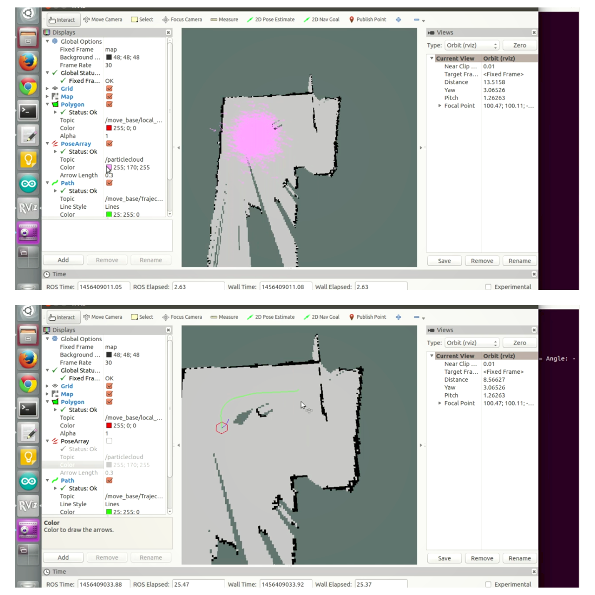 Pepper optimally navigates its environment by creating a map using the onboard Kinect sensor and the gmapping ROS package, employing the Simultaneous Localisation and Mapping Algorithm (SLAM).Localisation